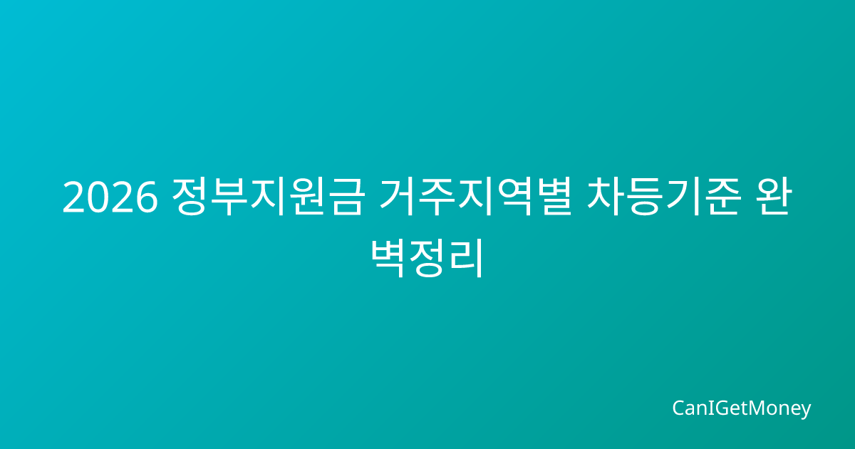 2026 정부지원금 거주지역별 차등기준 완벽정리