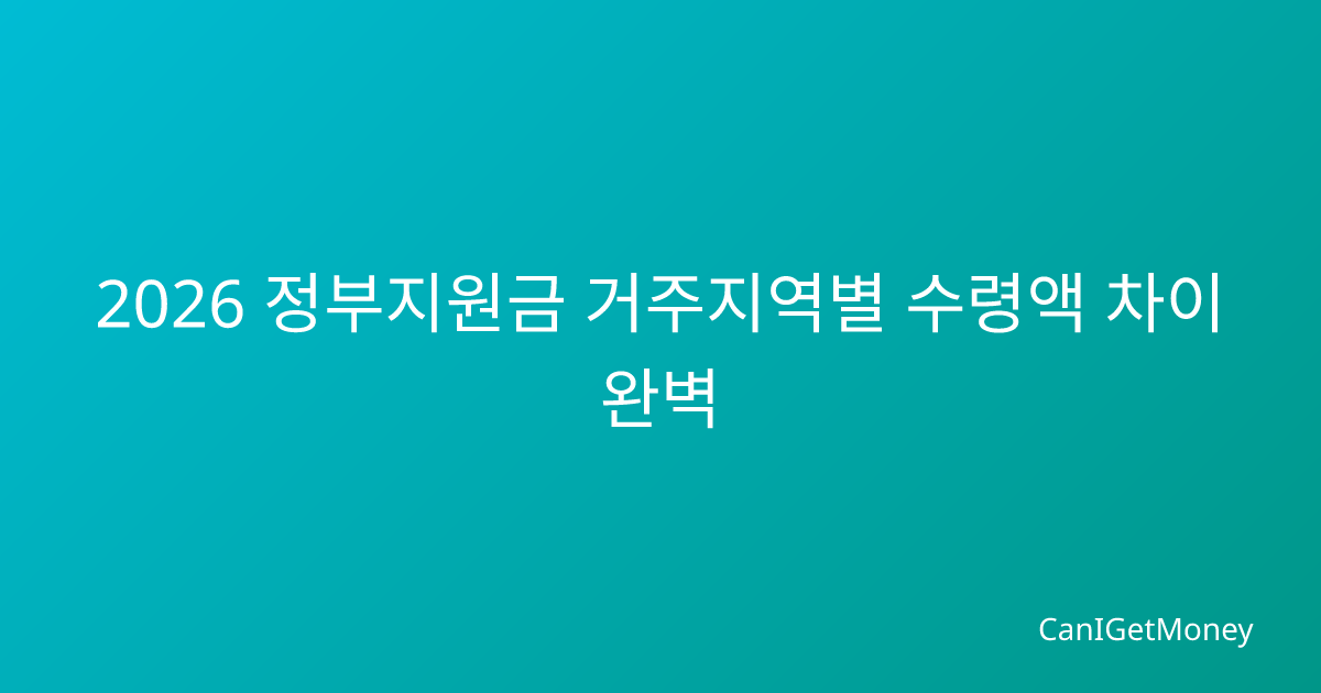 2026 정부지원금 거주지역별 수령액 차이 완벽 분석