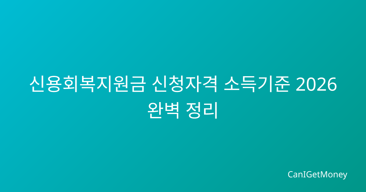 2026년 신용회복지원금 신청자격과 소득기준을 완벽 정리했습니다. 기준중위소득 150% 이하, 재산기준, 신청절차까지 한번에 확인하세요.